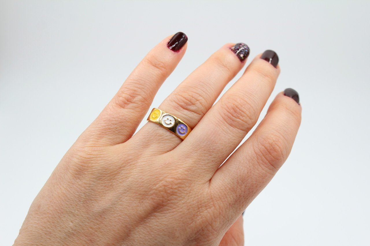 Altın Kap. Renkli Gülen Yüzler Yüzük