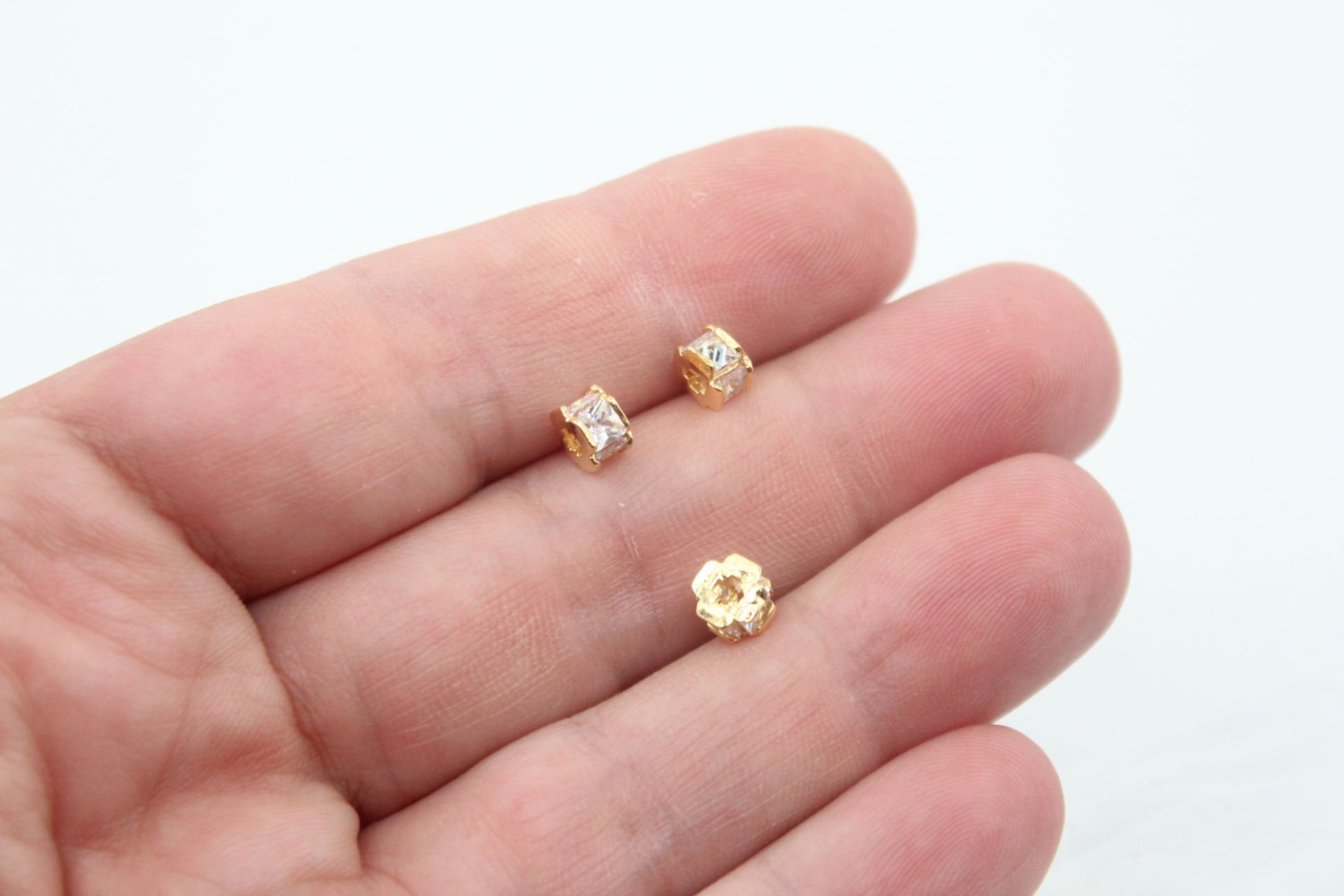 Altın Kaplama Kare Zirkonlu Boncuk Arası