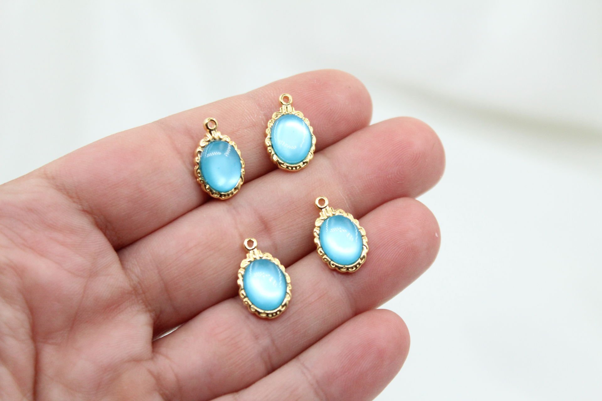 Altın Kaplama Mavi Sedef Taşlı Oval Uç